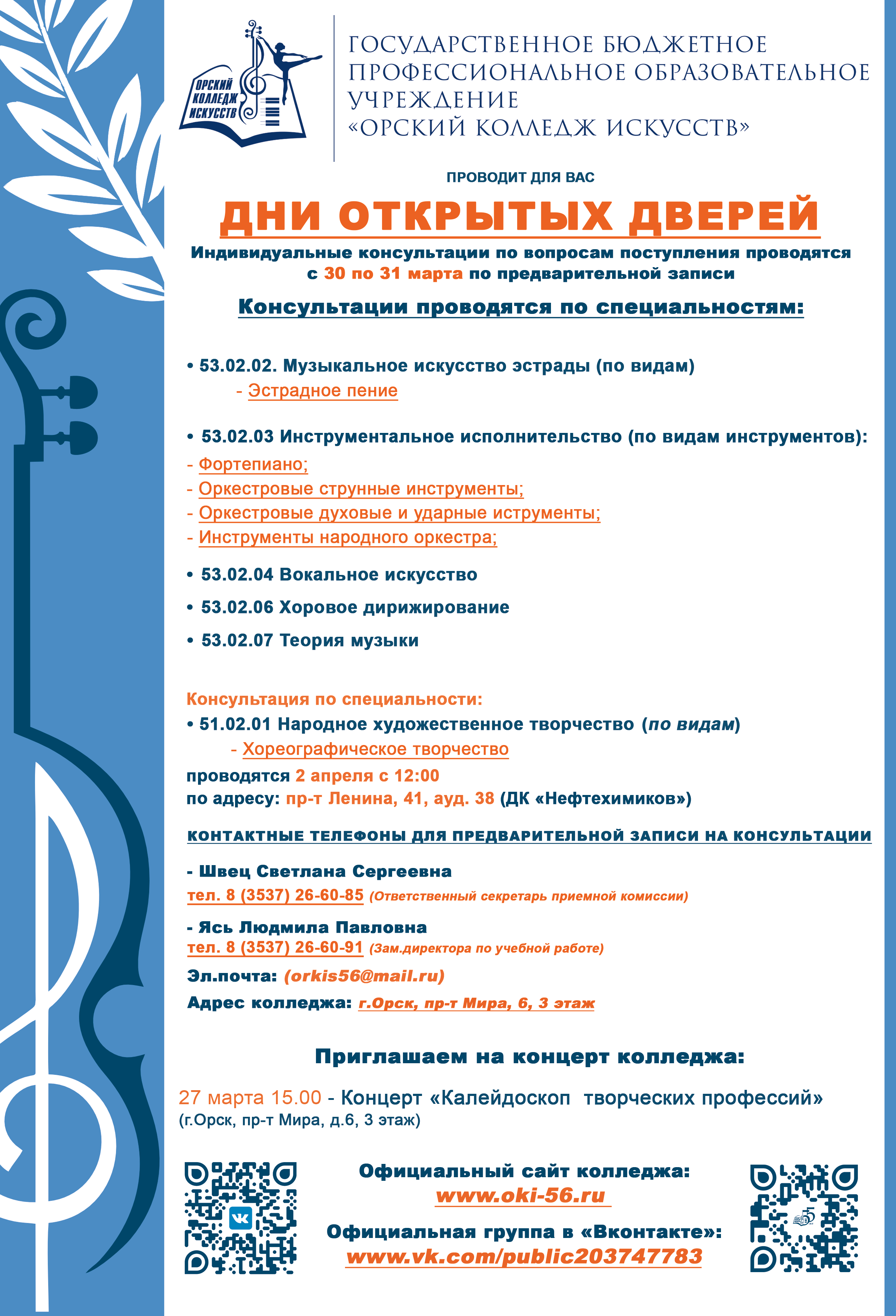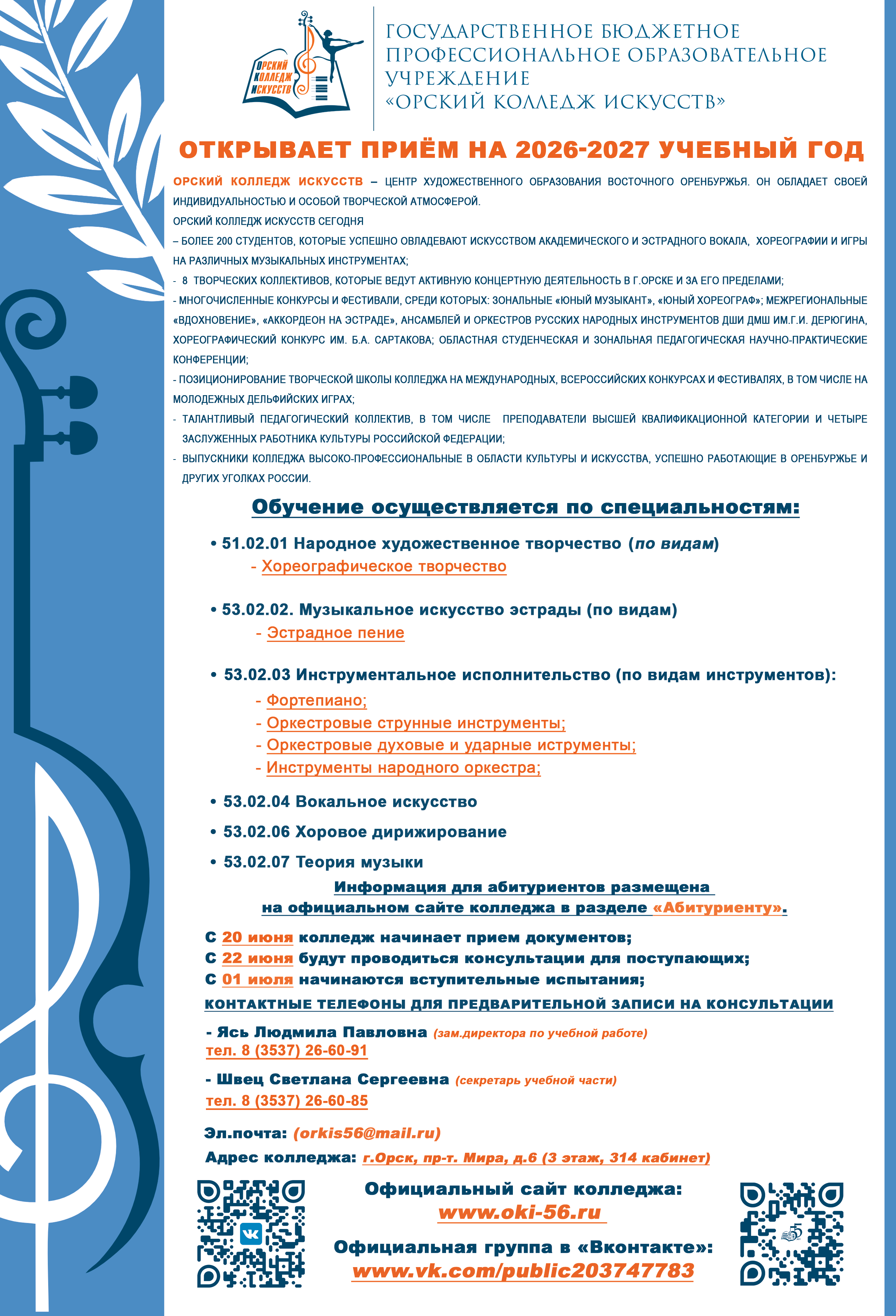 Приказ о зачислении студентов в ГБПОУ "Орский колледж искусств"